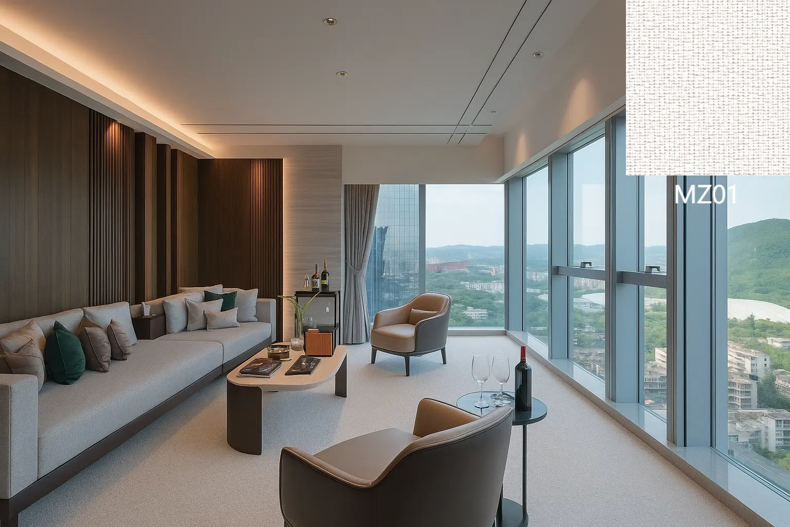Nature-serien har en dubbelfärgad slätvävsdesign. Den är mjuk, elegant, varm och visar naturliga färger. När det används inomhus skapar tyget en ljus, fräsch och lugn atmosfär, vilket förstärker utrymmet med en unik konstnärlig stil som omfamnar och förbinder med naturen.